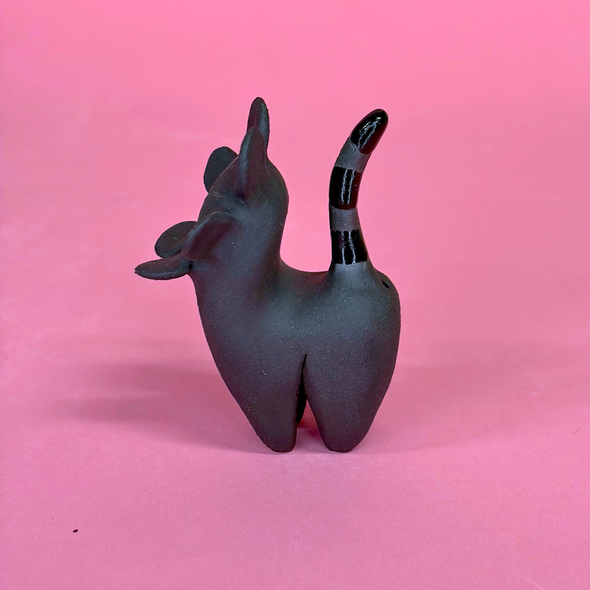 Petite sculpture en grès noir, émail noir brillant
