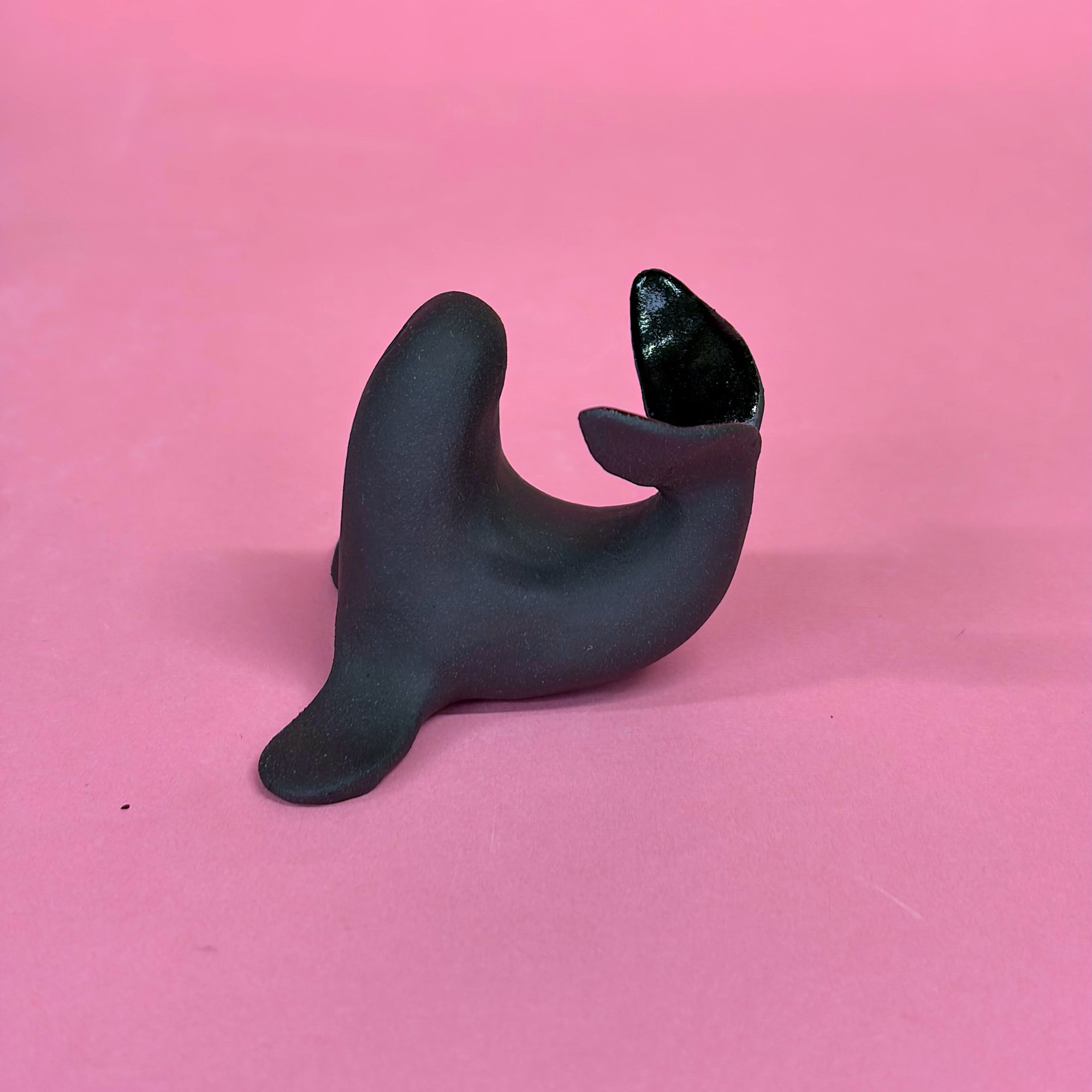 Petite sculpture en grès noir, émail noir brillant