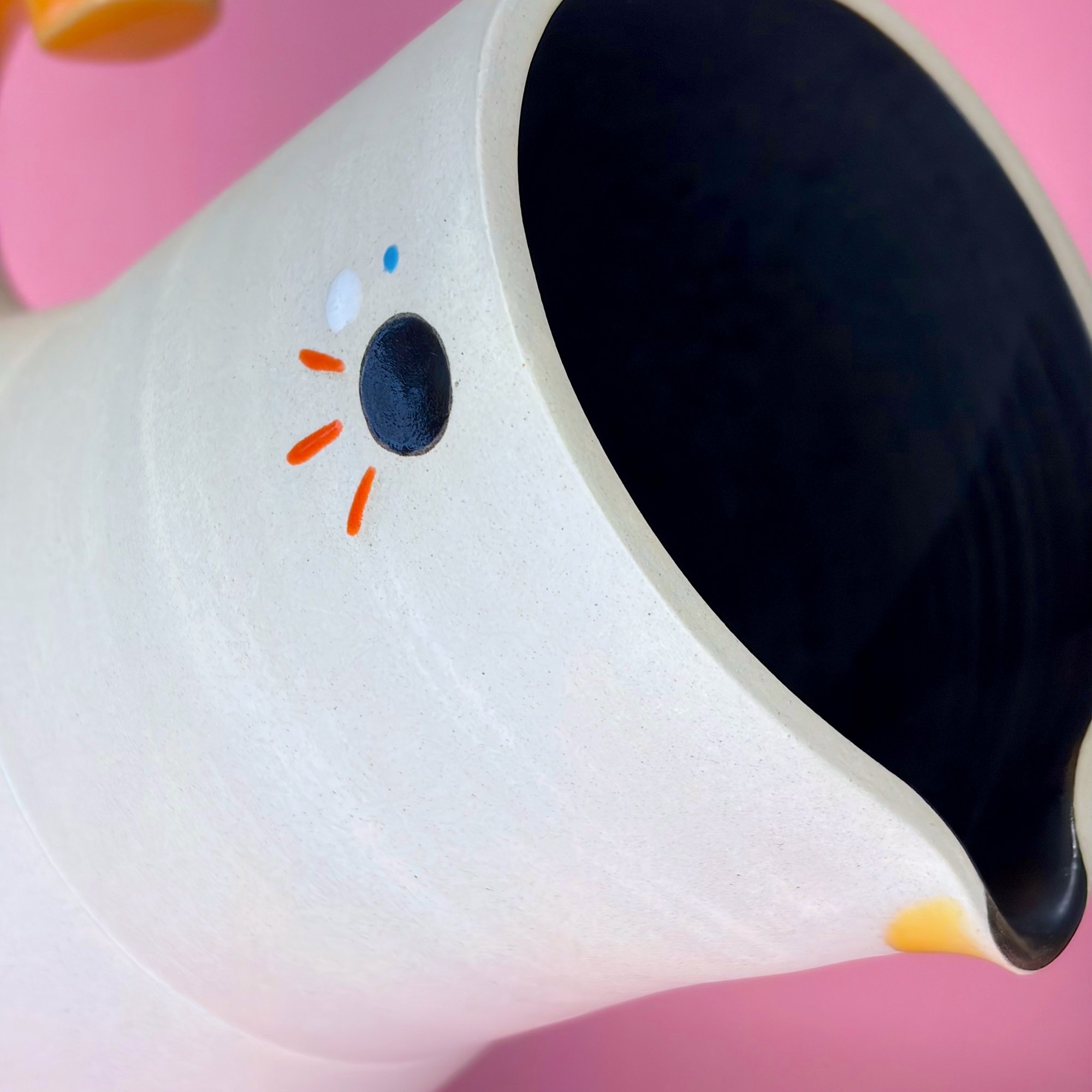 These little guys are unique. They are made one by one by hand, at the potter’s wheel. So their look can vary slightly from this visual.